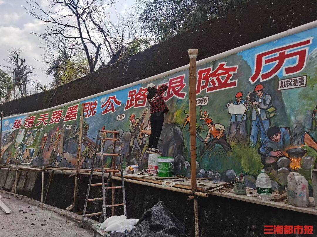 2月27日,西藏自治区林芝市墨脱县,80岁的湖南画家宁敏帆轻轻放下画笔。长26米、耗时两个月完成的墨脱公路主题墙画,在高原上徐徐展开。作为湖南省美术家协会会员、知名工艺美术师,宁敏帆从湖南奔赴雪域高原,以手中画笔讲述“天路”故事、致敬英雄。